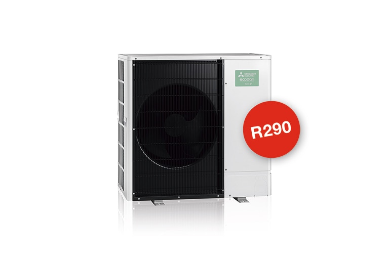 Noch nachhaltiger: In der Monoblock-Ausführung der Ecodan Luft/Wasser-Wärmepumpe kommt das Low-GWP-Kältemittel R290 (Propan) zum Einsatz.