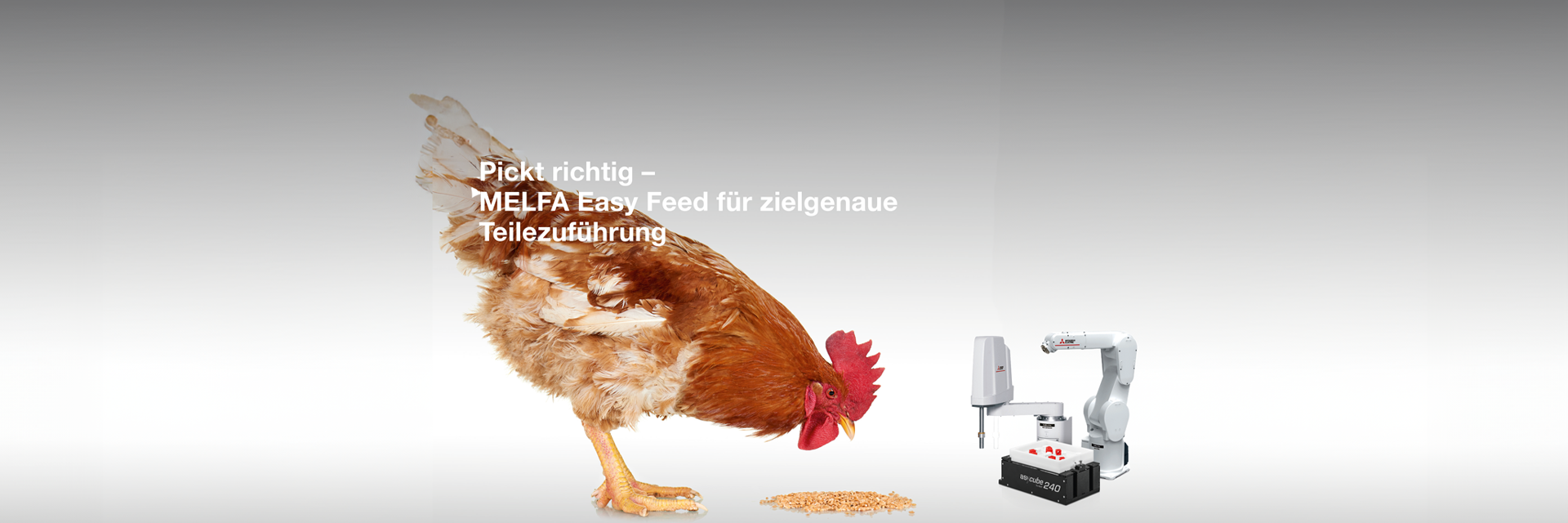 Kostenoptimierte, flexible Zuführung. Diese Vereinzelungslösung zum Separieren und Orientieren von kleinen bis großen Bauteilen sichert höchste Qualitätsansprüche. Und das auch bei empfindlichen Produkten. Die MELFA EasyFeed-Lösungen ermöglichen platzsparende Zellen zur Maschinenbestückung für innovative Automatisierungsanlagen. Denn flexible Zuführtechnik in Verbindung mit Robotern eröffnet in nahezu jeder Branche neue Möglichkeiten.