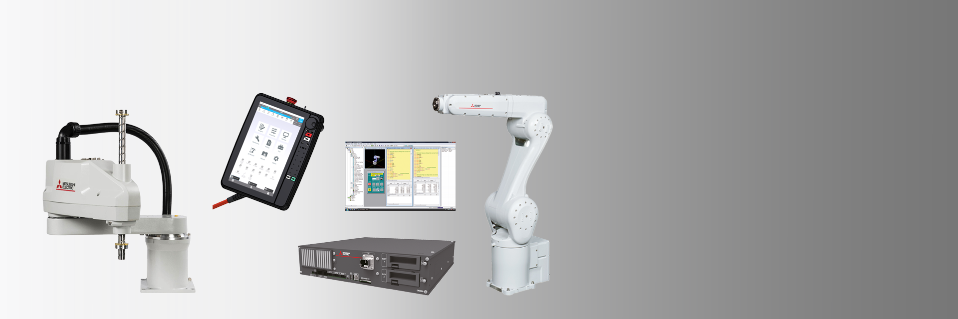 - Einfache Inbetriebnahme durch R56TB Teaching-Box mit Touchscreen und intuitiver RT ToolBox3 Software mit Simulation