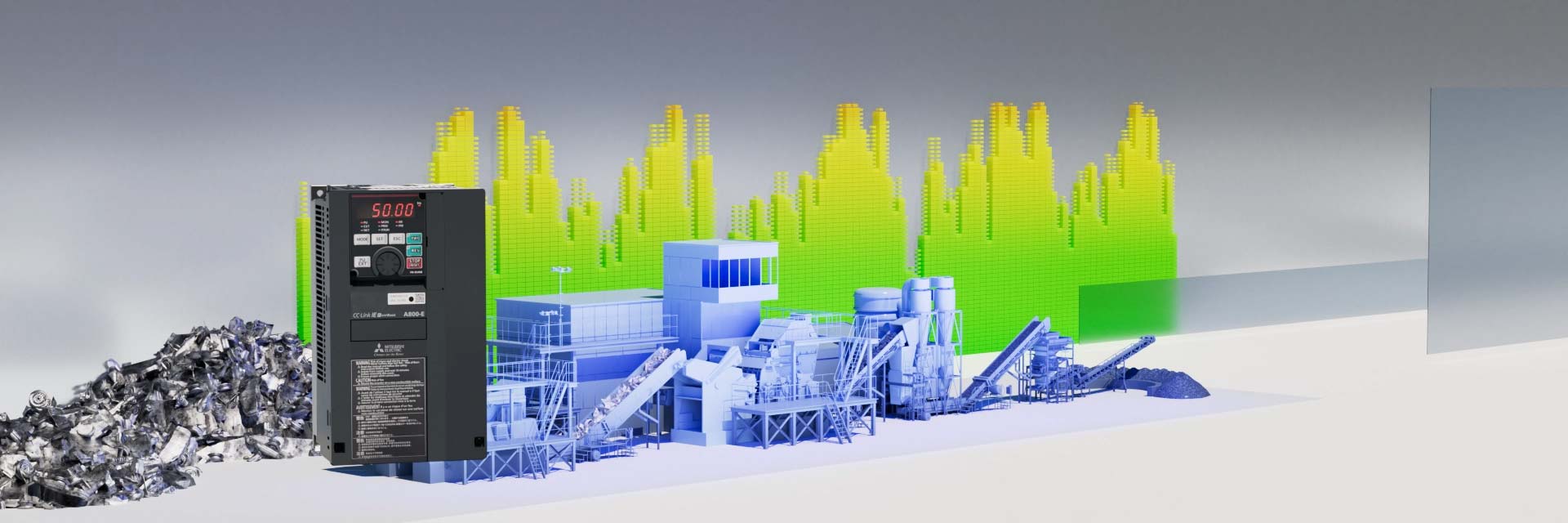 Ein großer Teil der Kosten im Recycling wird von leistungsstarken Motoren verursacht, die zahlreiche Maschinen antreiben. Frequenzumrichter von Mitsubishi Electric senken die Energiekosten erheblich. Denn sie passen Drehzahl und Drehmoment von Motoren genauso an, wie es Ihre Maschinen gerade brauchen. Der Einsatz eines Frequenzumrichters am Hauptmotor eines Schredders etwa spart bis zu 7-10 % der Energiekosten einer Recyclinganlage. Bei Geräten im Abluftbereich können die Energiekosten um mehr als 50 % reduziert werden und auch bei Förderbändern sinken die Stromkosten beträchtlich.